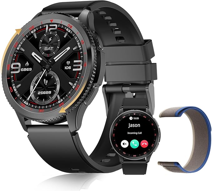 - بلوتوث 5.3 وعمر بطارية طويل: مع بلوتوث 5.3، تضمن الساعة اتصالًا سريعًا ومستقرًا للمكالمات وإشعارات الرسائل والتحكم في الكاميرا عن بعد. يعمل ببطارية 300 ميلي امبير في الساعة، ويوفر 4-6 أيام من الاستخدام العادي، 7-10 أيام في وضع الاستعداد، ويدعم وجوه الساعة التي تصنعها بنفسك للتخصيص الشخصي.